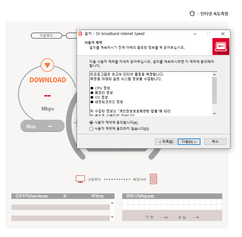 2. 초고속인터넷(기가) 속도 측정용 프로그램 설치 파일 다운